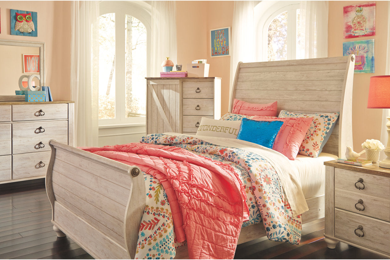 The Willowton chest of drawers is the ultimate statement piece for a coastal cottage or shabby chic inspired retreat. Whitewashed finish on the drawers and sides is wonderfully easy on the eyes. Paired with the unique plank-style top, it’s a driftwoody look that has our minds drifting away to beachy-keen escapes.