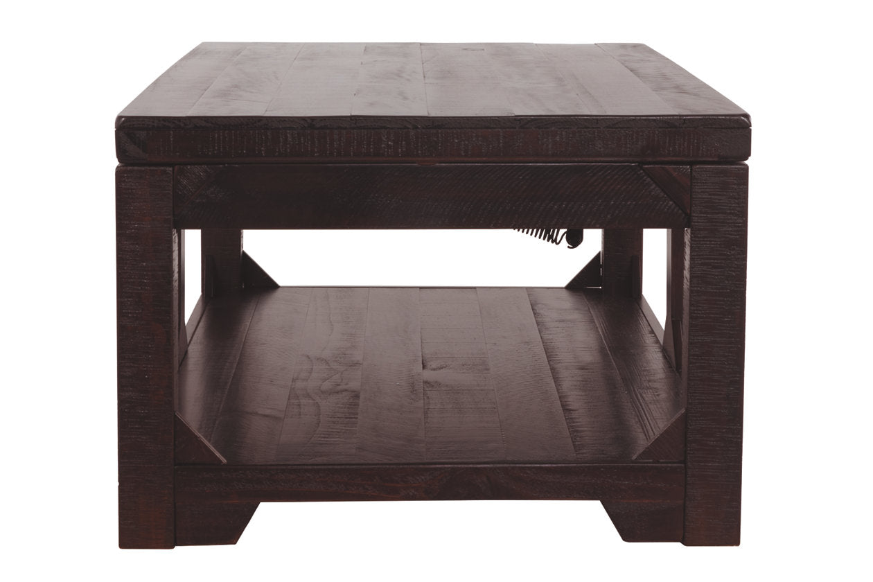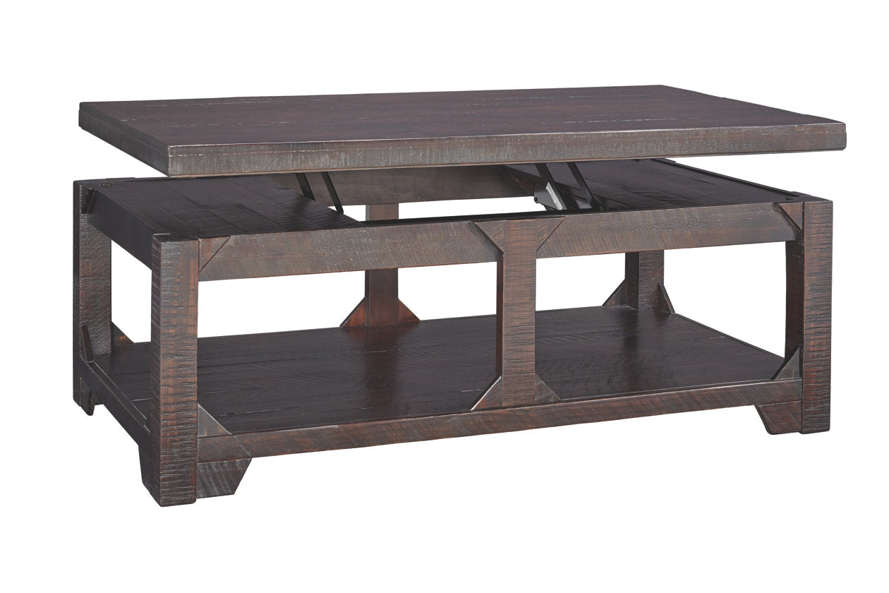 Bring rustic refinement home in a simply striking way with the Rogness lift top table. Crafted with pine wood for highly grained character, the table is treated to a dark rum-tone finish for a handsome, hearty aesthetic. Heavy distressed marks add a vintage look and feel that has so much appeal.