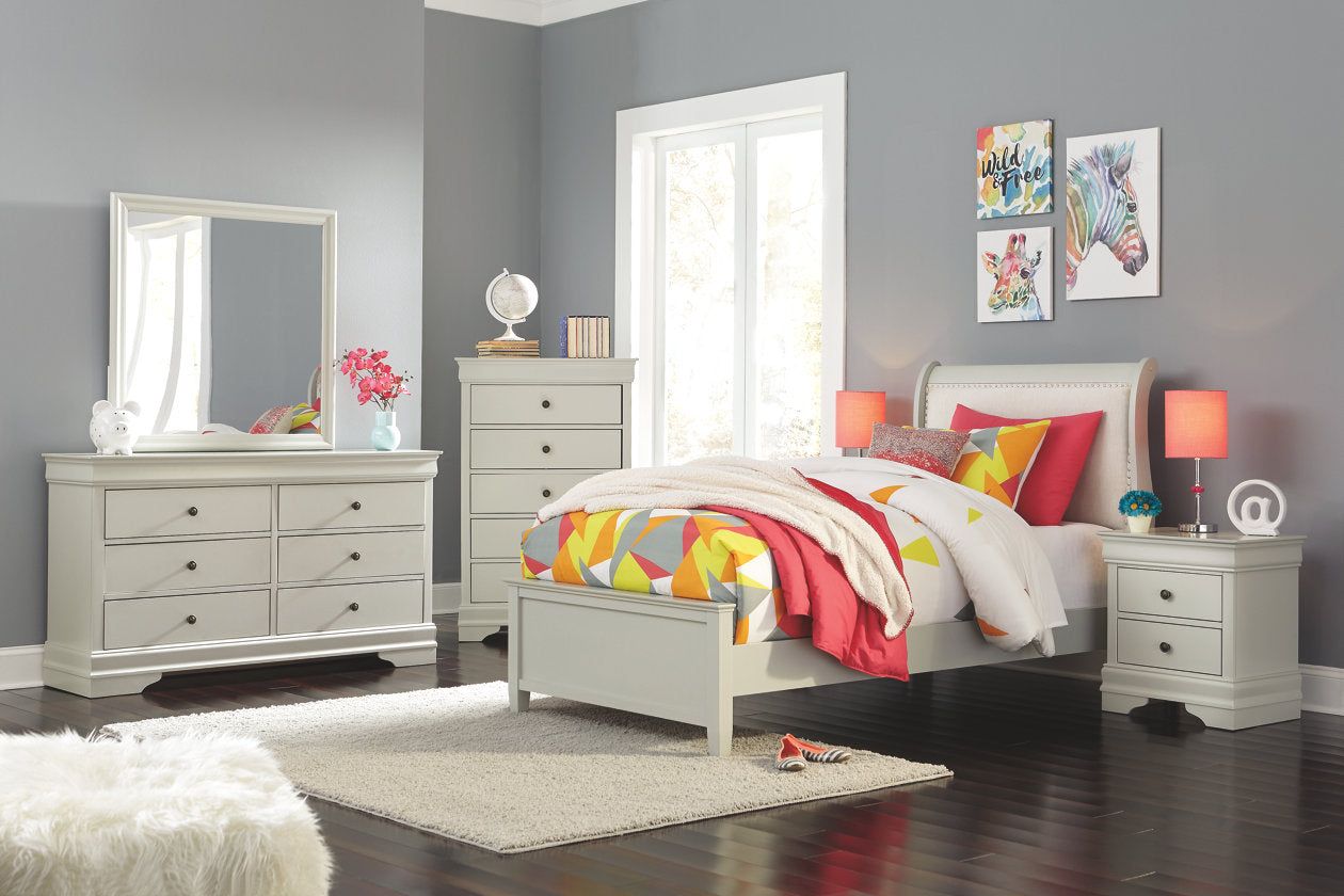 The Jorstad dresser and mirror set is all about subtle detailing. Classic Louis Phillippe styling with gorgeous top moulding and scalloped-edge feet instantly grabs your attention. Light gray hue offers a clean and crisp appearance for a fresh spin on traditional design. Antiqued brass-tone knobs build visual contrast while making it easy for you to pull out the spacious drawers.