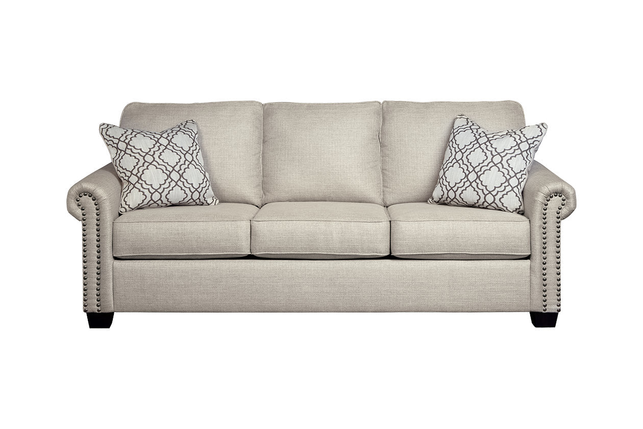 Evoking such European charm, the Farouh 2-piece living room set is right at home with so many aesthetics. The time-honored profile and pleated roll arms represent traditional design at its finest, while the linen-weave upholstery is decidedly relaxed. Best of all, the neutral shade complements color schemes and aesthetics aplenty—especially spaces with a cottage-quaint, farmhouse feel.