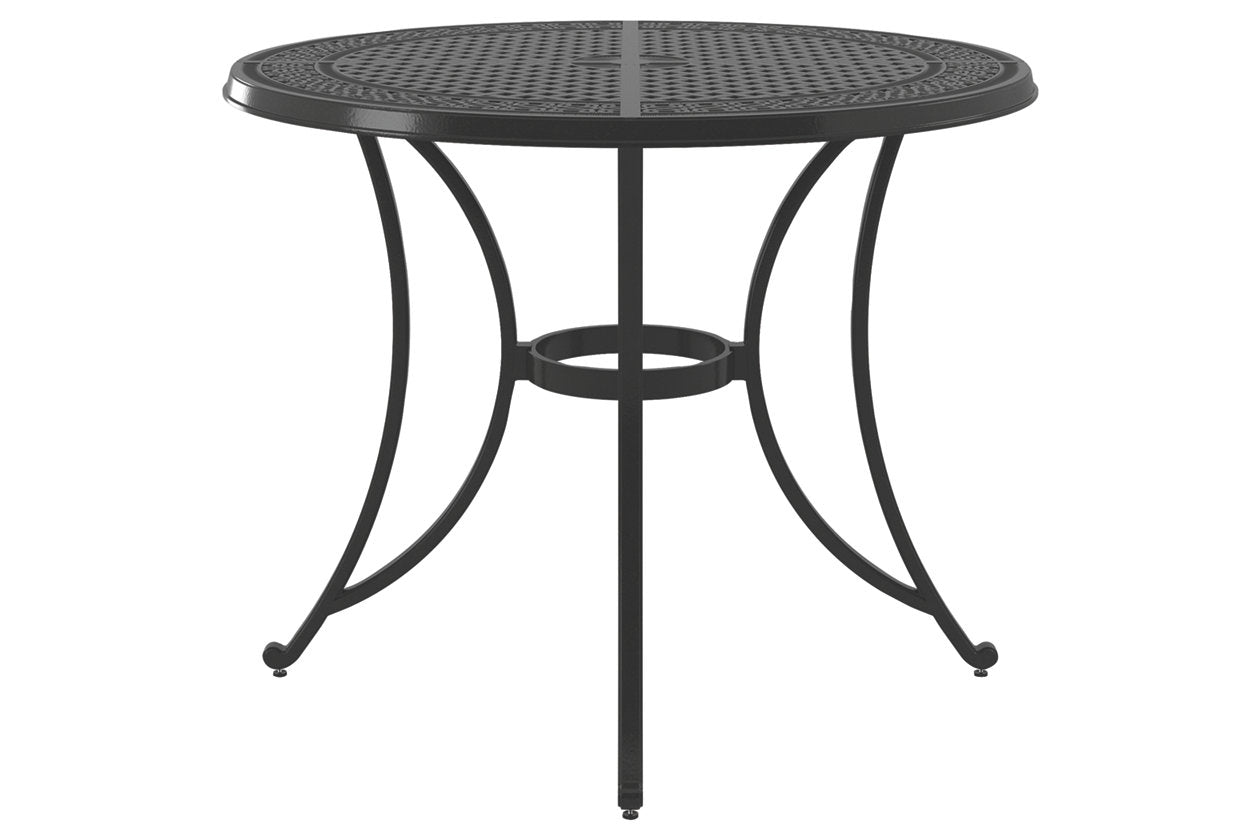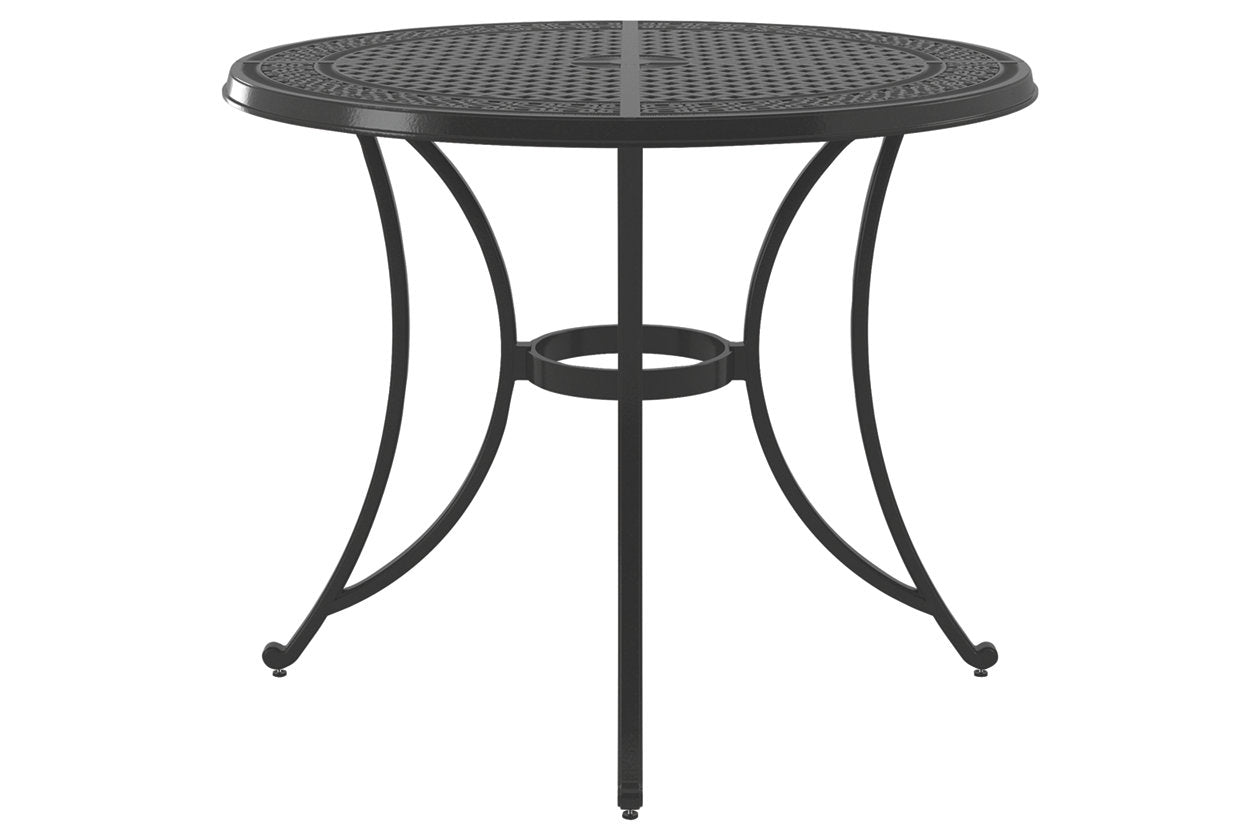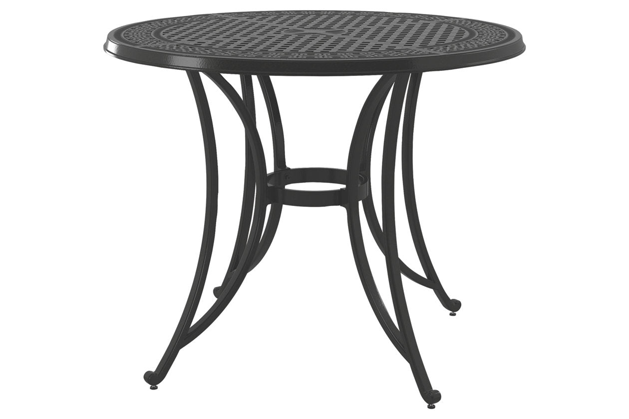With the Burnella round bar table, you're always in the flow of conversation. With plenty of room for four, this bar-height outdoor table sports an elegant and practical lattice top that allows rainwater to drain quickly. Durable cast aluminum serves up plenty of style through the seasons.
