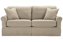 Fresh and textural. Cozy and comfortable. Warm and welcoming. That’s the feeling you’ll get with the simply chic Senchal sofa. Rest assured, it’s crafted with our highest quality coil seat cushions for that much more comfort and support. Cottony soft upholstery in “stone” tan is pleasing to the touch and easy on the eyes. Straight skirt styling is effortlessly elegant.