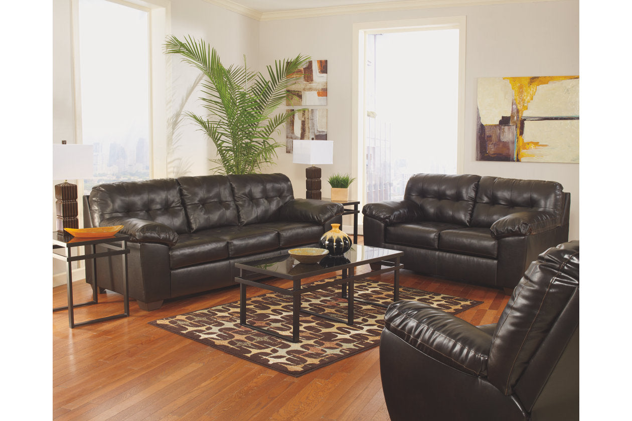 There’s no shame in sacking out and kicking back, not when you look as good as you do in the Alliston rocker recliner. Signature upholstery provides the look of gently weathered leather—enhanced with handsome tufted detailing and tailored curves. Pillow top padded armrests are over the top, while pull tab design keeps the fact that it’s a recliner on the lowdown.