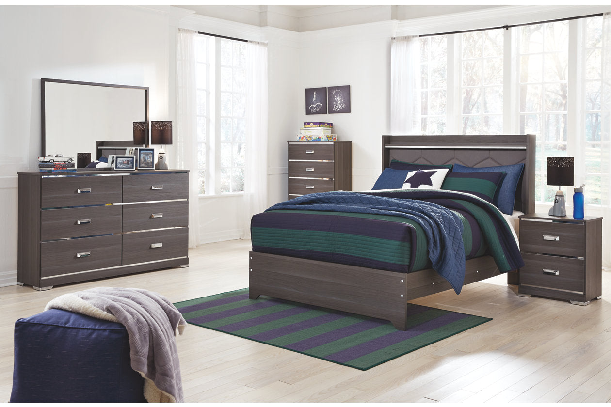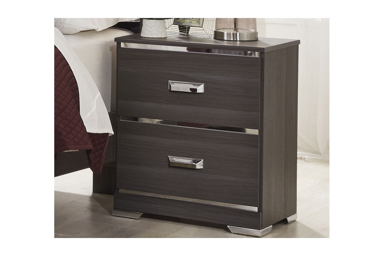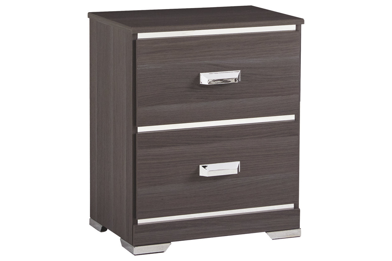The makings of your mini-me’s very own haven begin with the ultra-dapper Annikus nightstand. Gray hue finishes off the replicated oak wood grain with an authentic touch. Chrome-tone bin pulls and bracket feet elevate the contemporary appeal. Roomy drawers are spaced with chrome-tone rails and lined inside with a faux linen laminate for a clean finished look. You’re going to love the ease of keeping belongings stored here.