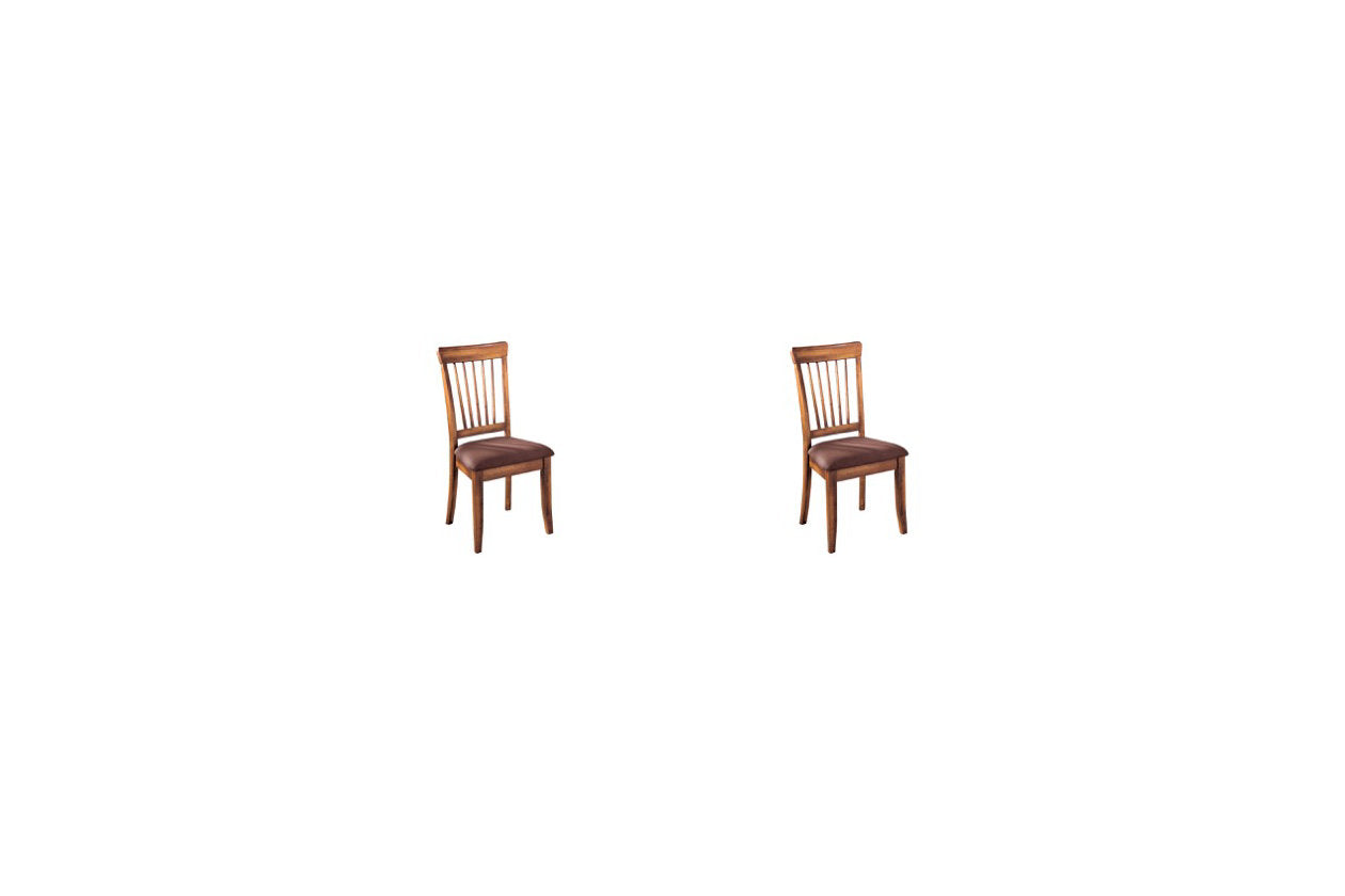 Berringer serves up elegance family style. The rich, rustic finish and simple profile are always in vogue, whether your aesthetic is vintage, country or traditional. Upholstered side chair has a classic spindle back and seat covered in easy-to-maintain microfiber.