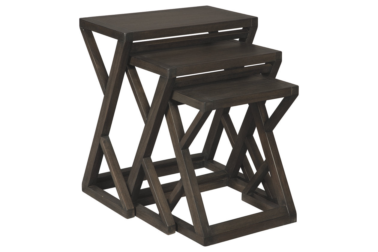 From every angle, the Cairnburg 3-piece nesting table set makes a simply striking statement. Crisp lines are softened with a warm, weathered brown finish for a casually cool, contemporary vibe.