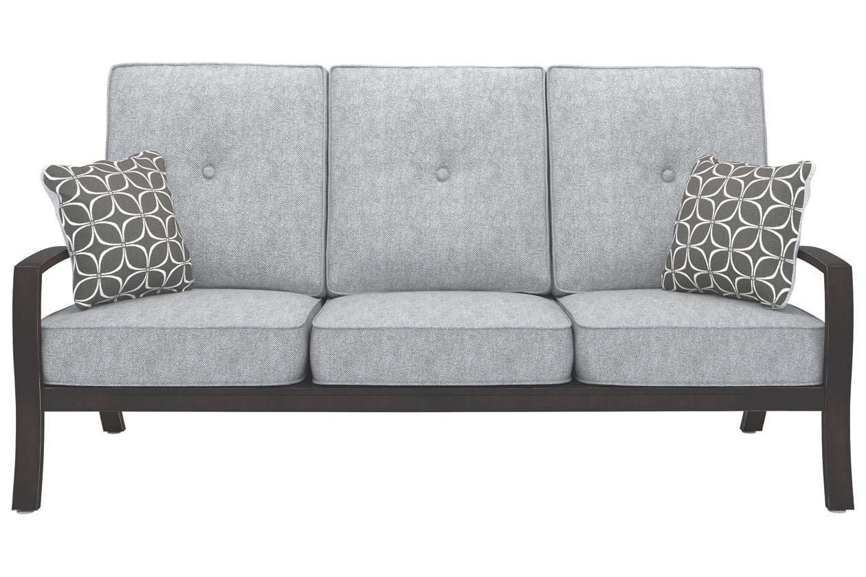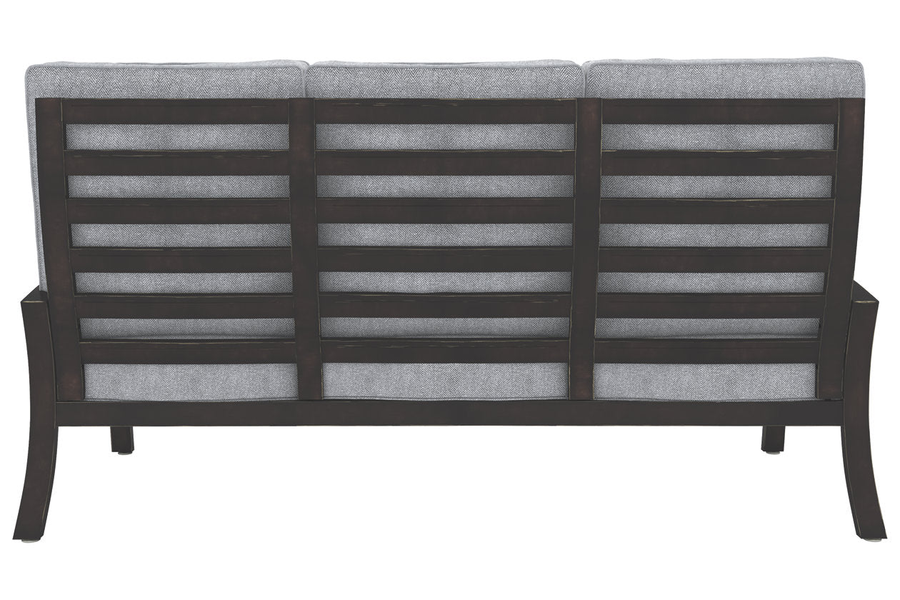 Taking style and durability to a higher level, the Castle Island outdoor sofa is designed to make indoor-outdoor living a royal pleasure. Crisp and clean, the dark brown-finished aluminum frame is rust free and full of contemporary flair. Indulgently thick and plush, the light gray cushions only look high maintenance. Thankfully, high-performing Nuvella® fabric makes life a breeze.