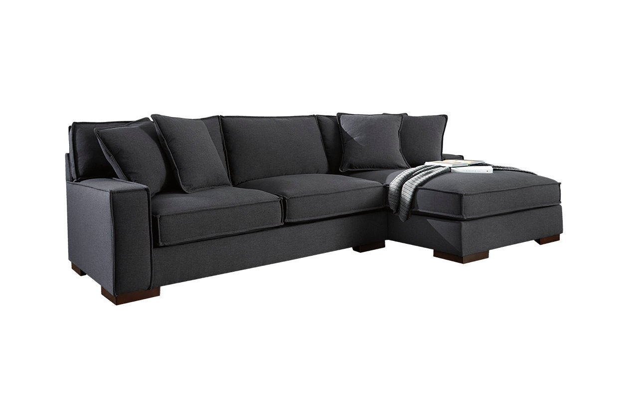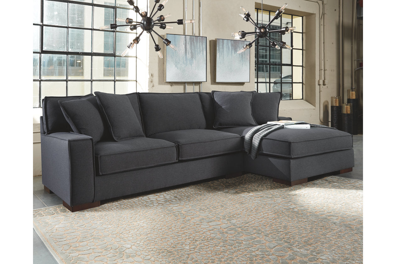 Elevate your comfort level in a city-chic way with the Gamaliel 2-piece sectional. Distinctive elements include a sultry charcoal-hued upholstery, low-track arms and prominent pie-crust welting that punctuates the sectional’s crisp, linear profile. And for your added pleasure: wonderfully supportive UltraPlush seat cushioning, pampering back pillows and indulgent feather-filled toss pillows with a hint of metallic sheen.