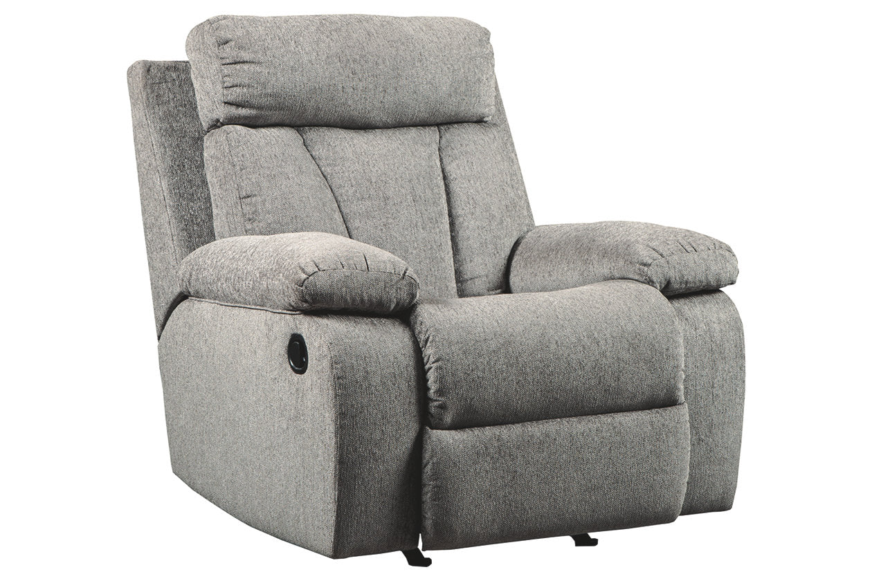 The Mitchiner rocker recliner is the ideal seat for one. This recliner is plush in all the right places, and will support you longer than you can binge watch your favorite TV show. The neutral upholstery begs for a patterned throw pillow and some of your time. A recliner that’s this easy breezy belongs in your home.